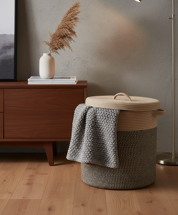 Crafted from high-quality cotton rope, this laundry basket offers a soft yet sturdy structure. The eco-friendly material ensures durability while providing a gentle touch on your clothes, making it perfect for daily use.