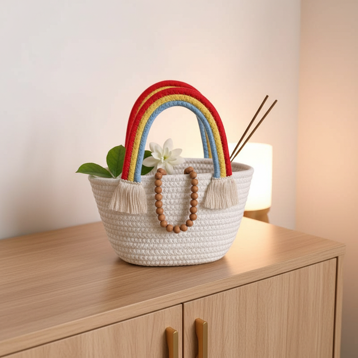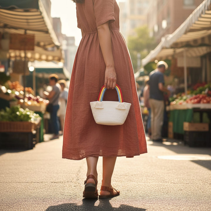 Trenly Earthy Chic Mini Jute Rainbow Tote – The Perfect Everyday Essential