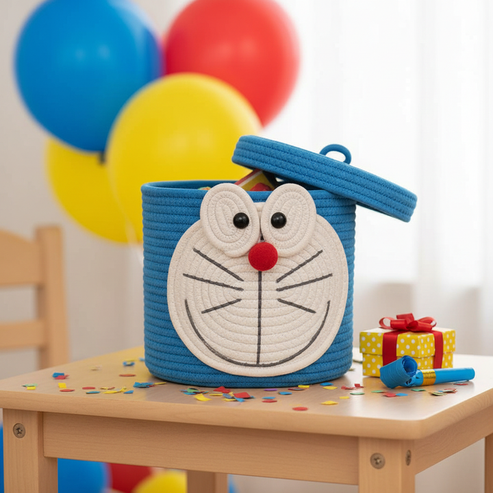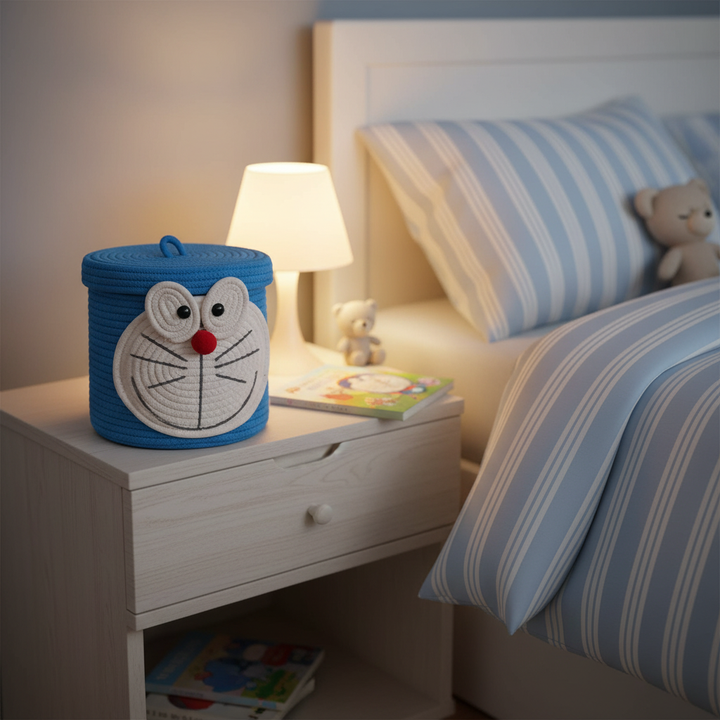 Perfectly sized for toys, clothes, books, or laundry, this Doraemon basket is as versatile as it is adorable. Its cylindrical shape makes it ideal for any corner of your home — from nursery shelves to under-table storage. It’s a fun, space-saving solution to keep your child’s room neat and cheerful.