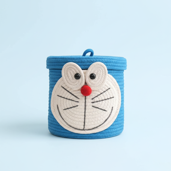 Doraemon Cotton Rope Storage Basket – Eco-Friendly Natural Fibre Toy Organizer for Kids