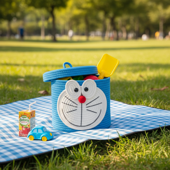 Handwoven from 100% natural cotton rope, this Doraemon-themed basket is designed to last through everyday use while keeping kids’ safety in mind. The sturdy structure holds toys, clothes, and books securely, while the soft cotton texture ensures there are no sharp edges or synthetic materials. Completely non-toxic and child-safe, it’s a reliable addition to your little one’s play area or bedroom.