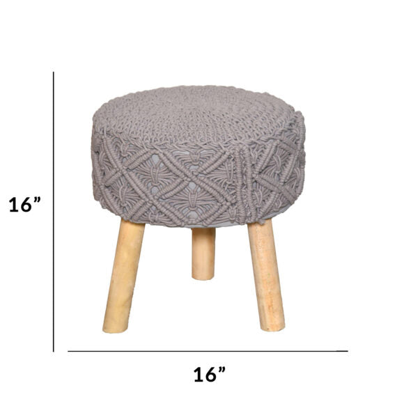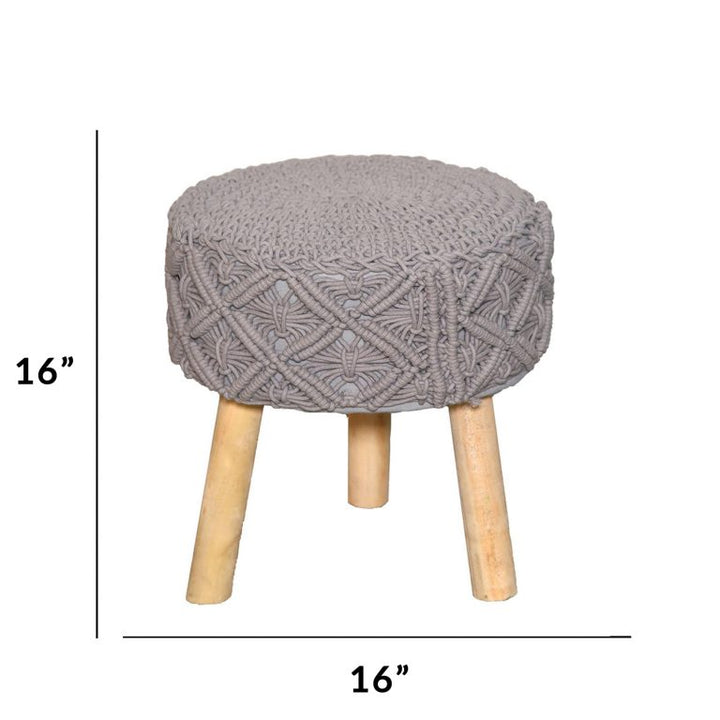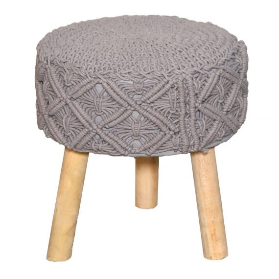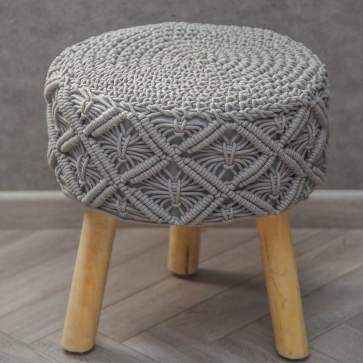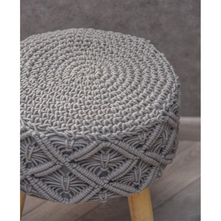 Grey Macrame Ottoman Stool – Handcrafted Elegance by Trenly