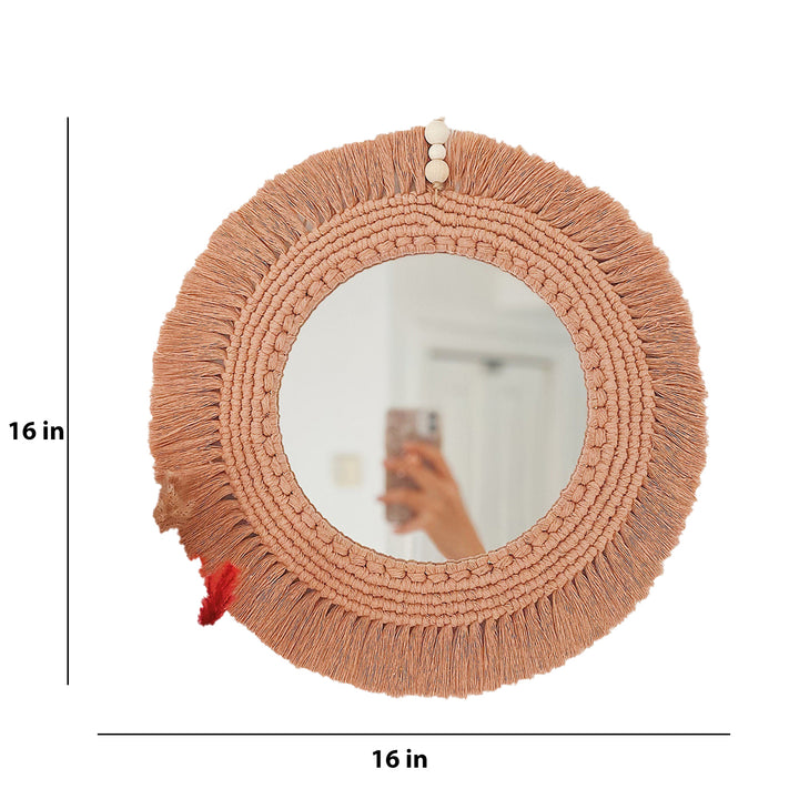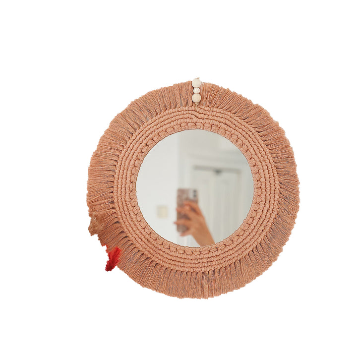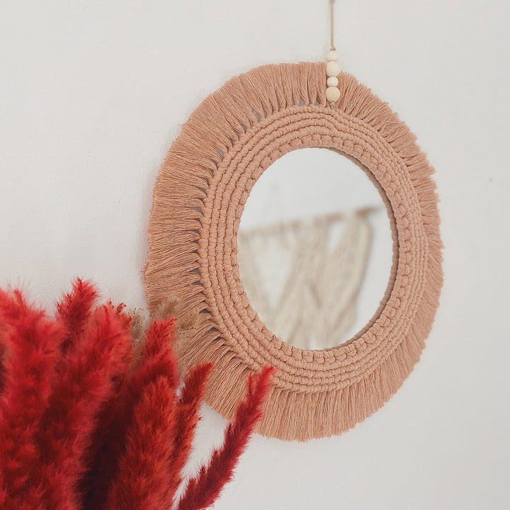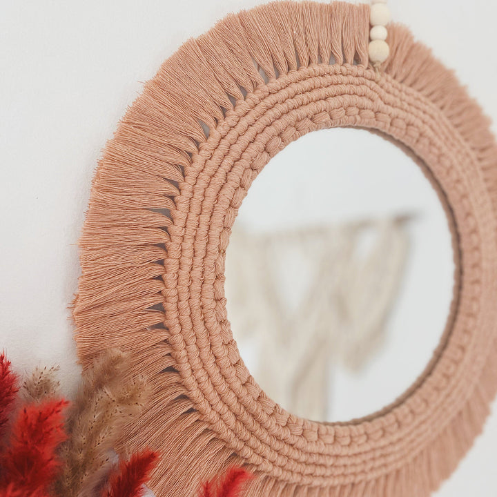 Handcrafted Macrame Wall Mirror - Peach Bohemian Decor