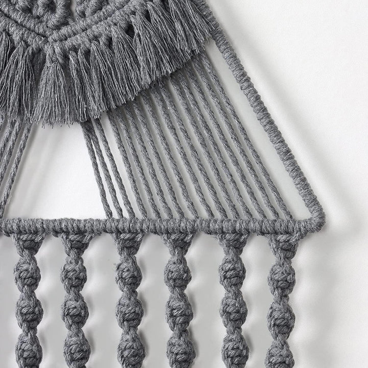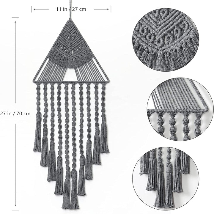 Handmade Macrame Dream Catcher – Boho Triangle Wall Hanging | Bohemian Wall Art Home Decor | Grey