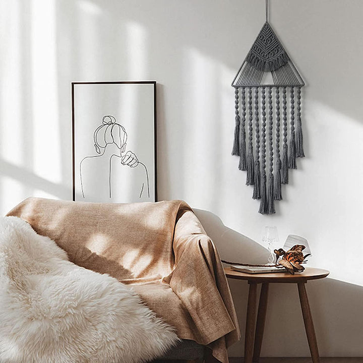 The intricately woven cotton cord and tassels provide a natural and artistic touch, bringing a sense of harmony to your home. Its earthy tones and soft textures blend beautifully with a variety of decor styles, adding a boho flair to your living space.