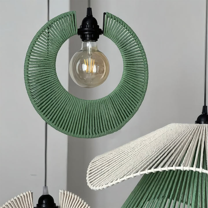 Handwoven Cotton Pendant Lamp Trio - Green & Beige Lighting