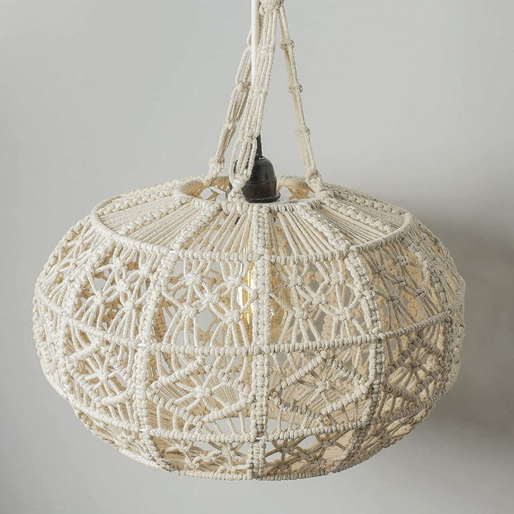 Macramé Boho Cotton Chandelier – Handcrafted Hanging Lamp for Ambient Home Lighting