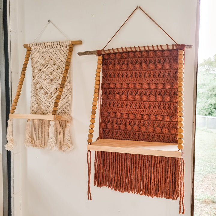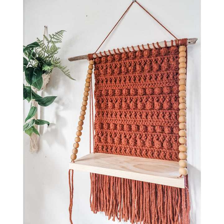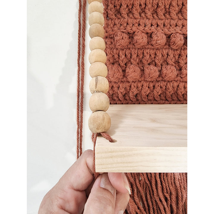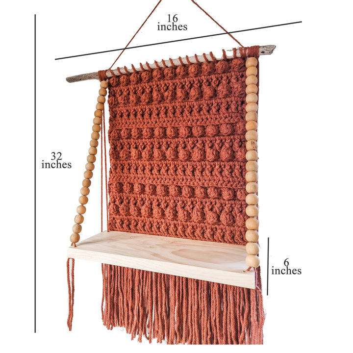 Macrame Wall Shelf - Handcrafted Boho Red Hanging Decor