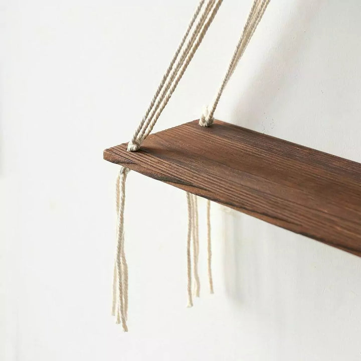 Add warmth to any space by using these wood hanging shelves to display plants, pictures, or decor. Whether placed in the living room, bedroom, or kitchen, they create a welcoming and stylish environment.