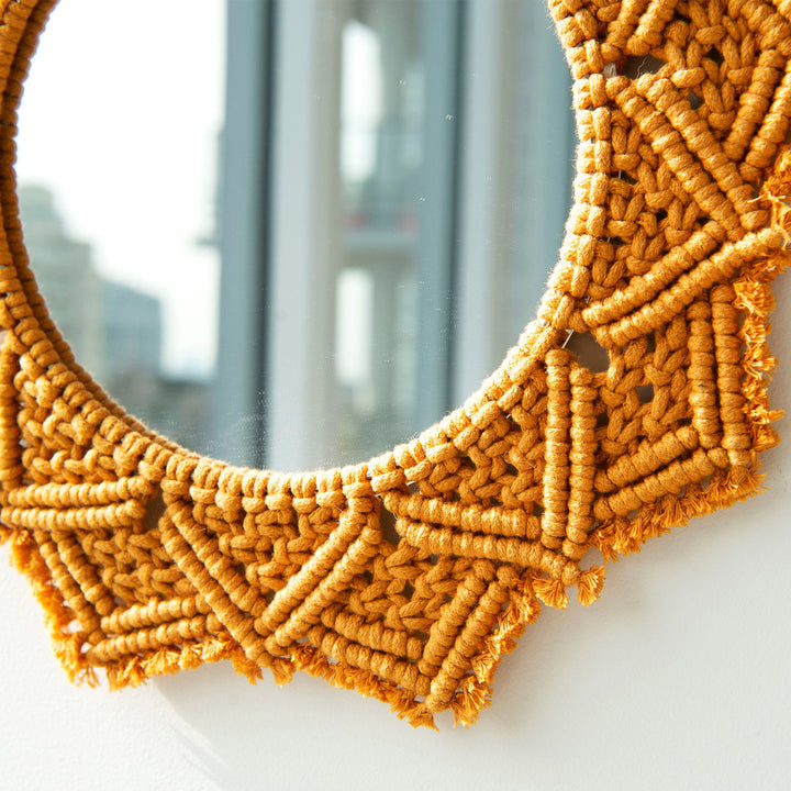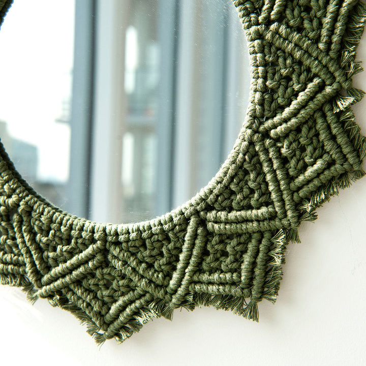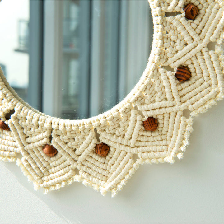 | Material | 100% Natural Cotton Macrame, Glass Mirror |
