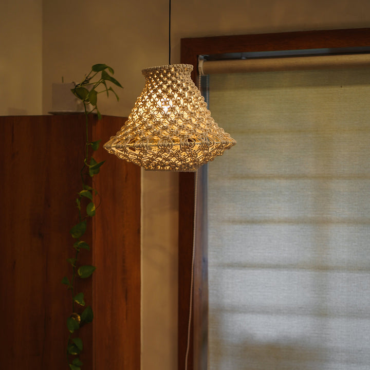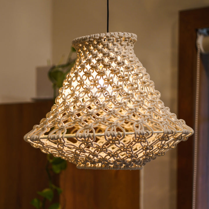 Trenly Artisanal Macrame Pendant Lamp - Natural Cotton Handcrafted