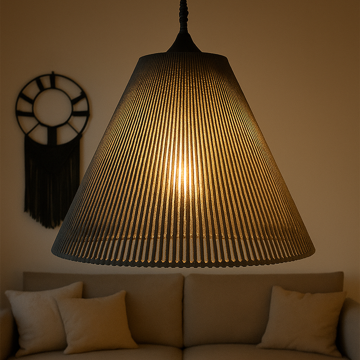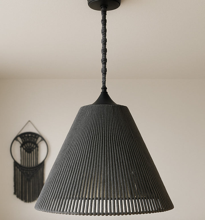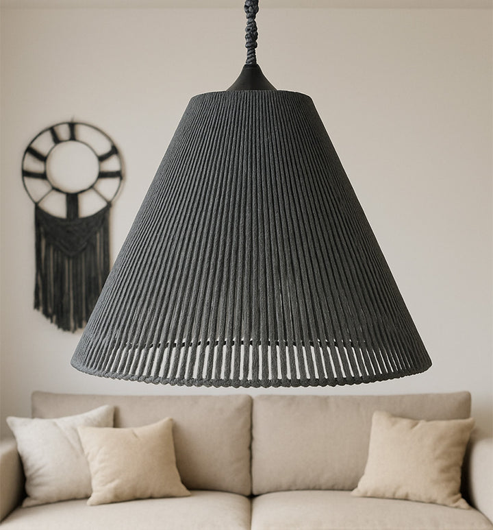 Trenly Handcrafted Cotton Cone Pendant Lamp – Natural Grey Handwoven Lighting for Modern & Rustic Interiors