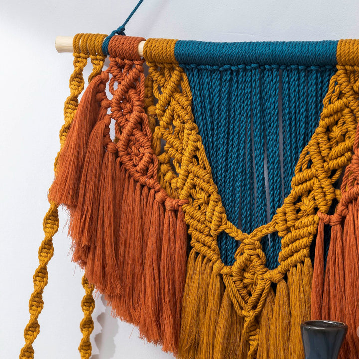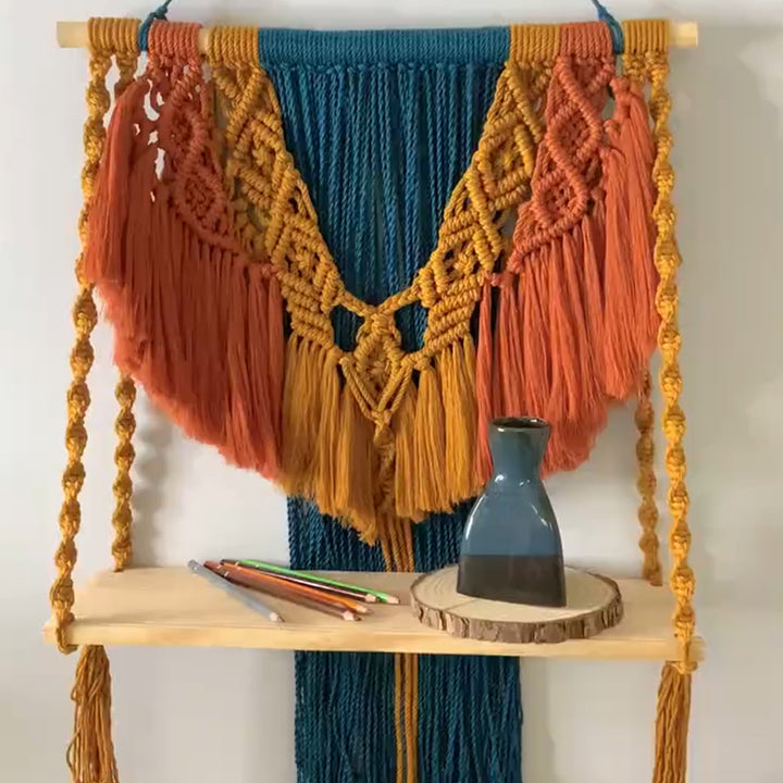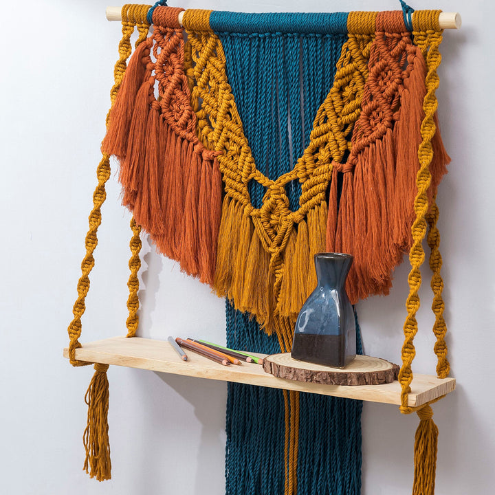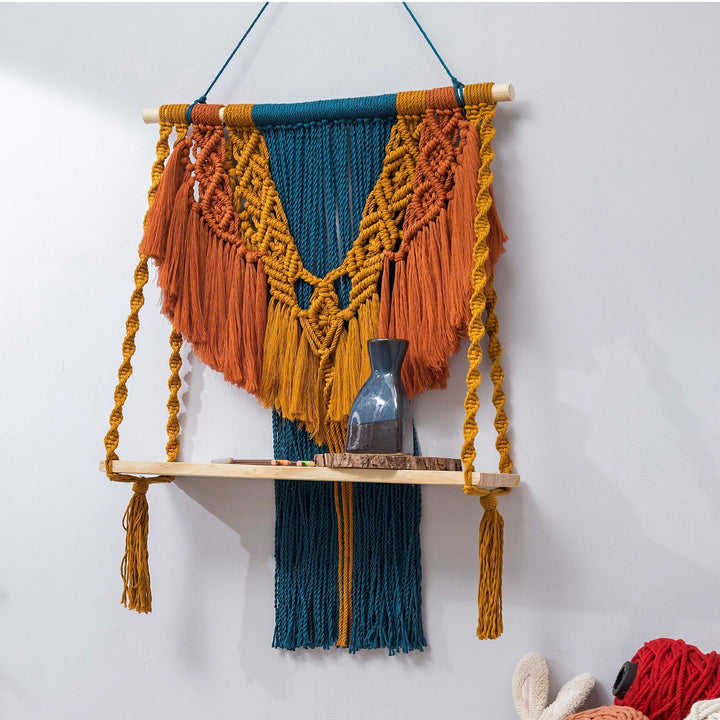 Trenly Handcrafted Macrame Peacock Wall Shelf - Vibrant Boho Decor