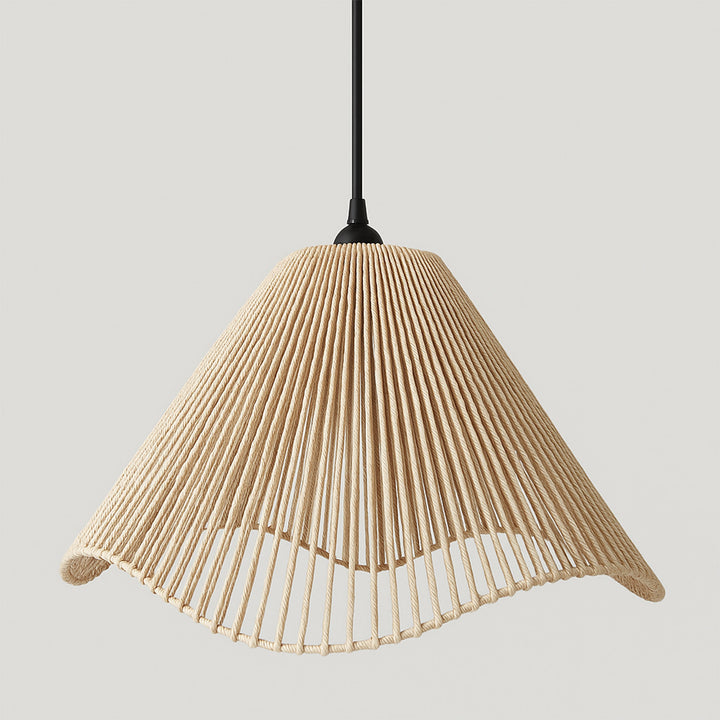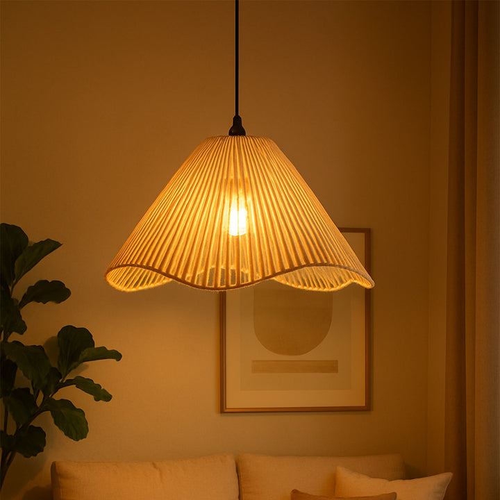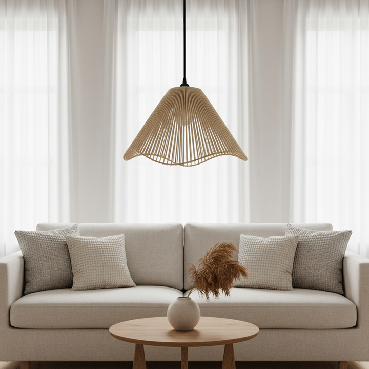 Trenly Handwoven Beige Cotton Wave Pendant Lamp | Organic Modern Lighting
