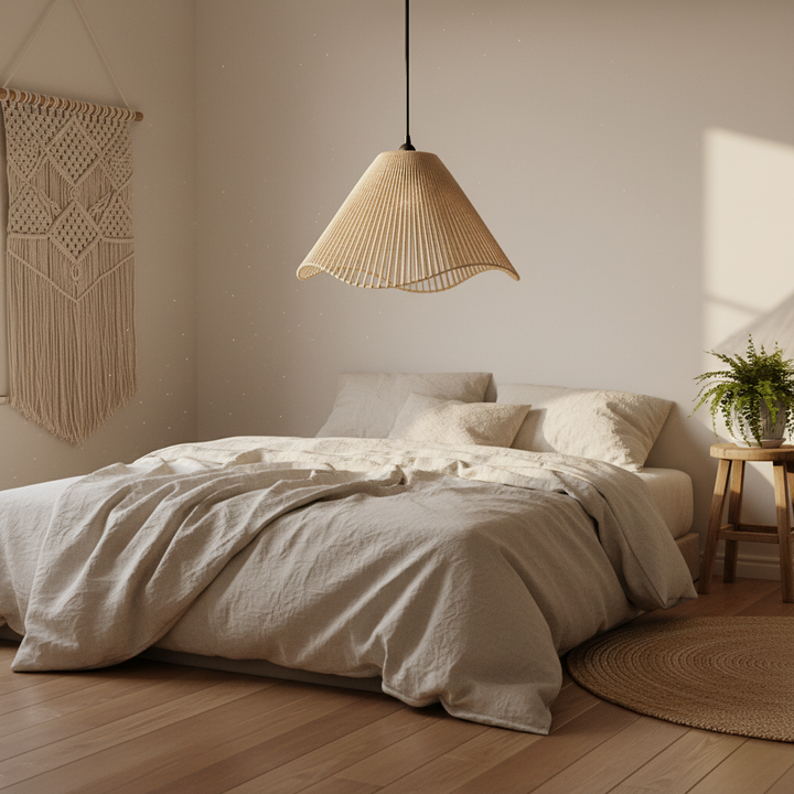 Embrace conscious living with a lamp that celebrates sustainable design and Indian artisanal heritage. Crafted from 100% natural cotton, each piece is handwoven by skilled artisans, reflecting Trenly's commitment to eco-friendly materials and authentic craftsmanship.
